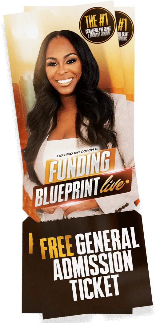 You’ll receive a VIP ticket to Coach K’s Fund Your Biz Summit (virtual), a digital copy of the Fired Into Freedom Book, access to GrantFind Premium (free trial), the Grant Tracker tool, the Grant Readiness Checklist, the Grant Language: Do & Don’t Guide, and a bonus General Admission ticket to Funding Blueprint Live (in-person).